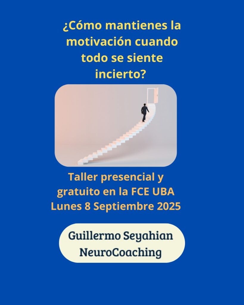Guillermo Seyahian, con 18 años de experiencia, te guiará en el taller «Cómo mantenerte motivado en tu desarrollo profesional». Él ha fusionado la ciencia del cerebro, el coaching y la PNL en una metodología poderosa: el NeuroCoaching. Gracias a ella, cientos de personas han aprendido a desarrollar habilidades blandas esenciales, clave para superar la crisis y generar más ingresos.