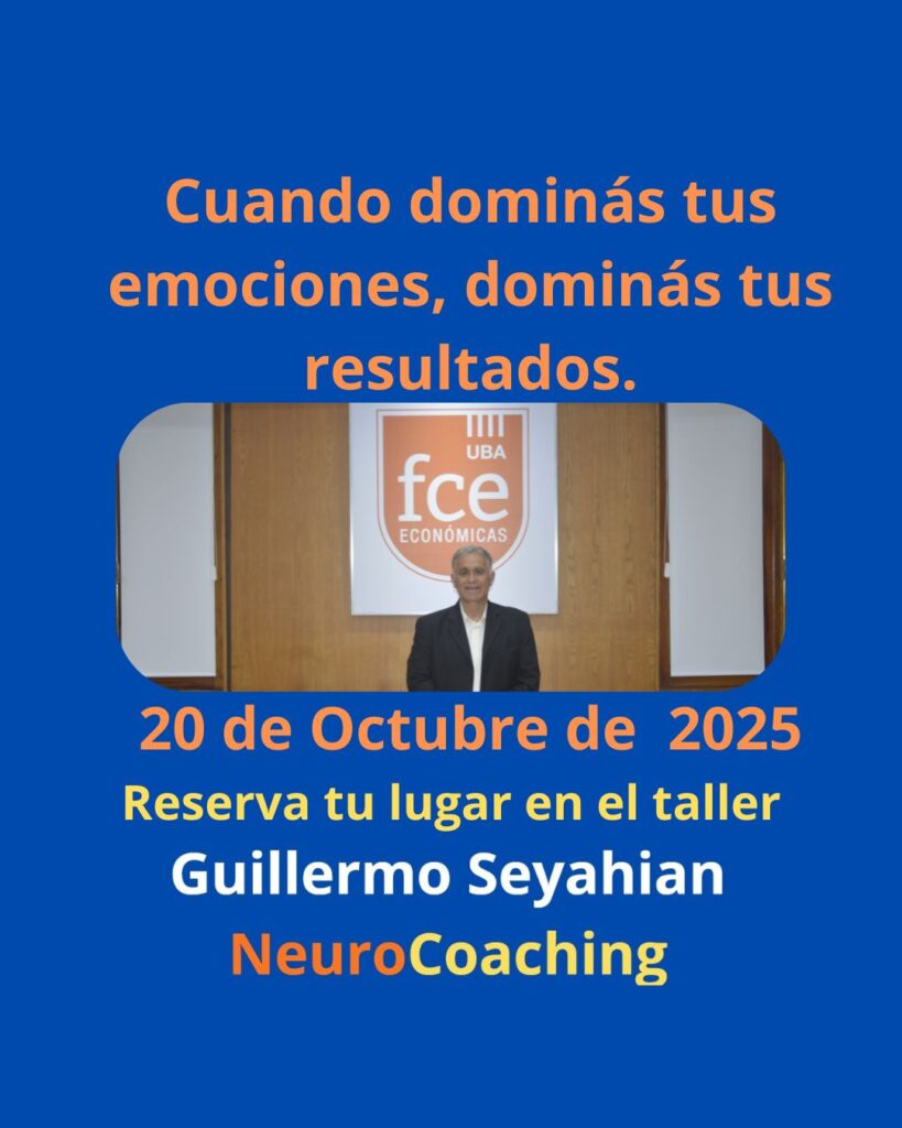 Eso es lo que te enseño en mi taller “Neurocoaching y Emociones: Transformando sentimientos en resultados”, donde vas a descubrir cómo tu cerebro y tus emociones pueden alinearse. Soy Guillermo Seyahian, creador de la Escuela Online NeuroCoaching®, con más de 400 talleres dictados y 8 libros publicados.